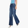 Teria Essentials High Rise Wide Leg jeans come in a dark wash color that gives it a clean rich denim look. This comfort stretch style guarantees all day comfort and enough stretch that it won't lose its shape. Meant to sit at your waist and fit snug as it widens down your thigh into its wide silhouette. Classic single button closure, zipper fly, with no distress.