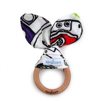 Kanga Care Baby Muslin Crinkle Bunny Ear Wood Teething Ring
