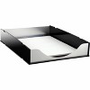 Front-loading letter tray holds letter-size paper and files for quick, easy access. The design features a curved cutout in the front panel for effortless loading and unloading, along with slots for stacking supports (sold separately). This handcrafted, stackable desk accessory is made of acrylic and aluminum. Designed to stack efficiently with optional supports, it enhances workspace aesthetics while protecting surfaces.