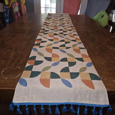 [This review was collected as part of a promotion.] The runner is full of color and I love the pop of blue with the tassels at the bottom. It isn’t flimsy so it lays nicely on the table. I really liked it and would want to order another color.
