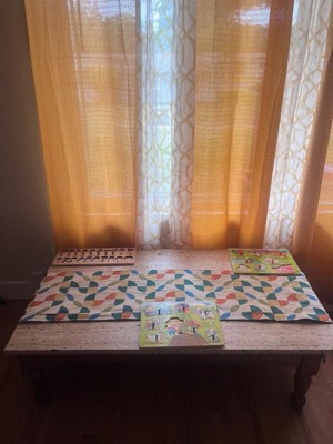 [This review was collected as part of a promotion.] Super cute table runner. It’s marketed for a kids room or playroom, but I think the playful, fun pattern works in my family room. Its great quality and very thick, it’s smaller than my kitchen table width so Im using it on my coffee table.