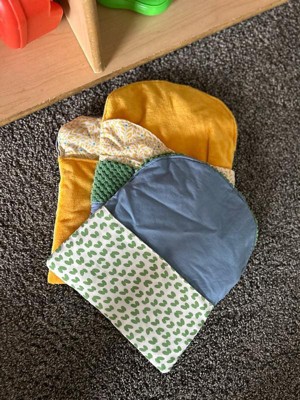[This review was collected as part of a promotion.] Thanks for sharing the photo — looks like a soft, cozy baby blanket or hooded towel from Kaplan Early Learning Company. The fabric has a cute yellow and light blue leaf pattern on one side and a soft, solid yellow material on the other. It’s neatly packed in a plastic bag, and from the appearance, it seems well-made and perfect for little ones.