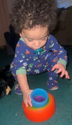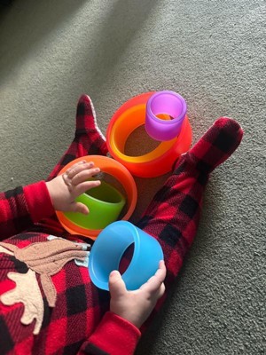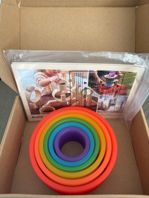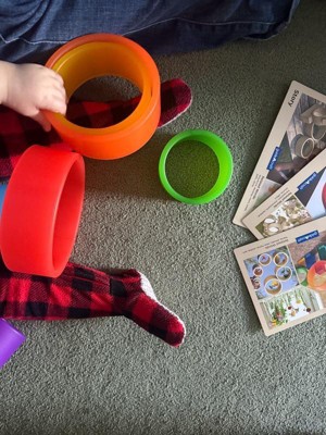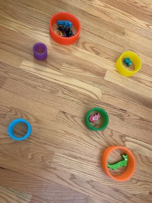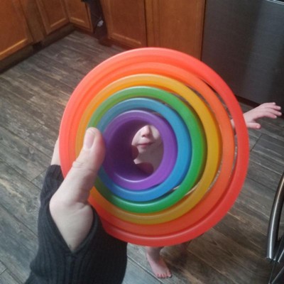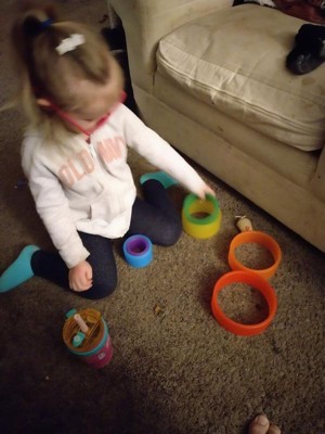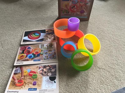 [This review was collected as part of a promotion.] This is something I wouldn't think to buy ( although it looks like one of those monthly subscription boxes and I do like the idea for many reasons) but apparently it's great for much older kids as well - 4 year old was mesmerized and picked these over and over. It's great to teach so many things- colors, sizes, comparisons, building skills, even numbers. So far they have been rolled on the floor,tossed onto door handles, built into a tower, twirled around arm, leg hoola hooped and used as a food divider.