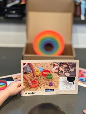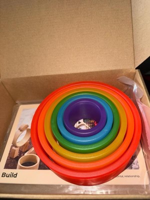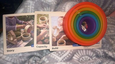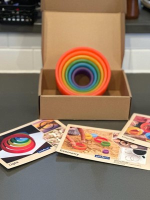 - Set includes 6 circle shapes in nesting sizes and rainbow colors as well as double-sided concept cards