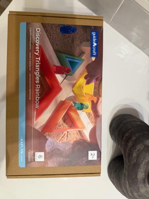 [This review was collected as part of a promotion.] The Discovery Rainbow Triangles are such a fun educational toy. My kids loved counting each triangle and identifying the colors and sizes. The triangles are thick and durable and the colors are very vibrant. My kids were able to use their imagination and play in many different ways with the triangles. We loved that the triangles come with description cards with different words, meanings and related words. I highly recommend this toy.
