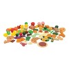 Expand your pretend play kitchen with this set of 125 piece grocery store products, which includes an assortment of food, personal care products, and international foods. Children will find the educational focus of playing with these foods enhances dramatic play, imaginative thinking and gross motor skills, as they pretend to make meals and their favorite foods.Twenty-four items are hand painted on safe, durable hard wood combined with 101 soft molded everyday foods. (Foods may vary slightly from those shown).