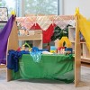 Inspire imagination with a beautiful, colorful playstand. Children will use the included primary-colored chiffon fabrics to drape over the top, creating a vibrant background for play with light and shadows, dramatic play, puppet shows and collaborative activities along the wide shelf. Entire playstand measures 36"L x 14"W x 36"H. Clean with mild soap and water. Do not use cleansers, bleach, etc. Some assembly required.