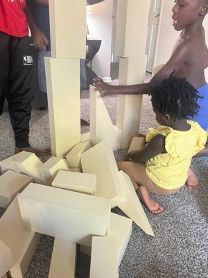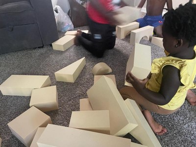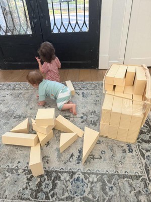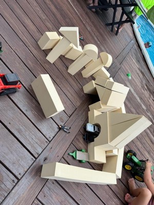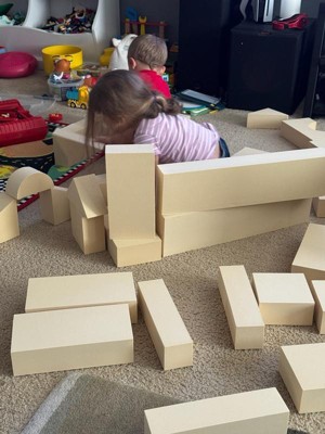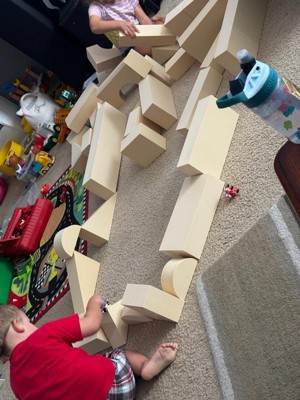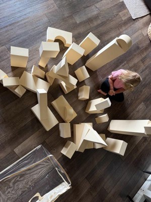 [This review was collected as part of a promotion.] These foam block are everything. They are big and so chocking hazard is out the window. They are foam, so any breaking is also out the window. As soon as my baby saw them, she was super excited to start building her dream structures. She handled the blocks with ease even for their size. From the shapes to the sizes, to the durability and texture of the blocks. The strength of each block was very good. The packing was simple but came in one piece. Over all the product is worth it.