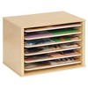 Keep your classroom organized with the Kaplan Wooden Puzzle Rack, the perfect solution for storing up to twelve 9" x 12" puzzles. Made from durable wood, this puzzle organizer encourages independence and responsibility as children learn to return materials to their proper place. With an open design and sturdy construction, it supports self-directed learning and provides easy access during play. Measures 14"W x 10"H x 10"D. Fully assembled. Puzzles sold separately.