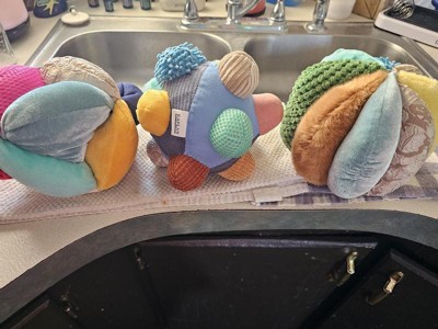 Encourage innate play patterns and early exploration with a stimulating toy set. High-contrast, vibrant colors, interesting textures, and soft shapes make this Knots and Knobs Plush Ball Set the perfect early learning toy for infants. Designed for infants who are just starting to reach, grasp, and use their hands, this plush set will strengthen fine motor skills, entertain, and engage.