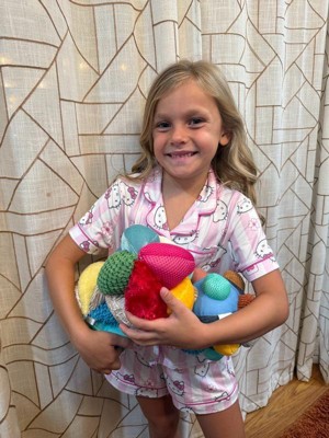 - Largest plush ball measures 7.5" in diameter