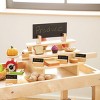 3 years & up. Enhance dramatic play possibilities with an authentically-inspired wooden Market Cart. Complete with real, rotating wheels, this cart is the perfect addition to the dramatic play area of the classroom. An included tiered display area and wide flat shelves on multiple levels provide plenty of room for pretend food, or pretend play accessories.
