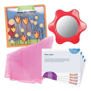 The most basic of baby games involves hiding and reappearing -- peek-a-boo! What seems like simple fun is actually teaching baby about a complex concept: object permanence. This means that your little one is learning that just because an item can no longer be seen, it doesn't mean that it no longer exists. With carefully selected materials and bilingual activity card(s) targeted towards each stage of development, this kit promotes learning while strengthening the bond between parent and child. An ideal way for caregivers and families to enrich children's learning experiences together. Kit includes a fabric storage bag. Contents may vary.