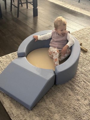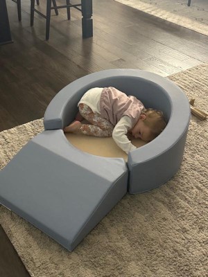 [This review was collected as part of a promotion.] My kids were absolutely thrilled to receive the Roundabout Retreat. They are 2 and 4. Either can easily snuggle up in it to relax or play. As you can see, they can also use it for a wrestling match. I would recommend this for a crawling baby up to probably 4-5 years old. Certainly something a baby could grow into. This would also be great for a daycare/nursery setup.