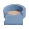 Create a comfortable place for young children using the soft, safe Roundabout Retreat. A rounded, inviting shape welcomes children to cozy up with a special toy or book, while the ramp makes it easy for very young children to climb inside. Easily wipe clean with damp cloth and mild soap. Measures 40" x 29" x 12".