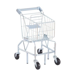 The perfect addition to the dramatic play area, the Shop with Me Grocery Cart will make little ones think they are roaming the aisles of the store during playtime. A sturdy metal construction, pivoting front wheels, and an accessible cart basket make this the ideal mini grocery cart for children. Young children can put dolls in the front section, and fill up the cart with pretend fruit and vegetables and otherfood or other dramatic play accessories.