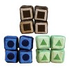 - Set of 12 blocks features a variety of shapes and colors on all sides