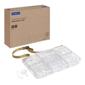 Enhance scientific exploration with the Traveling Treasures Discovery Lab. This lab is a great portable storage unit for natural materials, bugs, sensory objects, and anything else young children find fascinating and want to examine more closely. The magnifying lids, tweezers, and additional handheld magnifier helps children investigate the items in the natural environment or in the classroom.