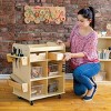 Provide children with a genuine woodworking experience using this Utility Storage Cart, designed to store and organize all the tools they need for building and creating. Features like notched sides, divided trays, bins, and a recessed top keep tools organized and easily accessible. Constructed from solid birch and birch plywood with durable casters, this cart is both sturdy and mobile—making it a perfect addition to any classroom. Measures 22"L x 15"W x 28"H. Clean with mild soap and water only; avoid harsh cleaners or bleach.
