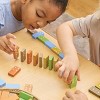 Make play more exciting with a set of Wooden Dominoes in a range of beautiful, nature-inspired colors. Children can stack and match while developing critical thinking skills, recognizing colors, creating patterns and more! Children can line the pieces up and knock them over again and again for hours of fun while experiencing cause and effect in real time. Set includes 168 pieces each measuring 1" x 1.8" x .4".