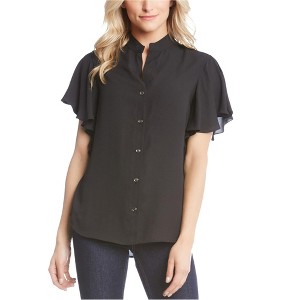 Karen Kane Womens Ruffle Sleeve Button Down Blouse