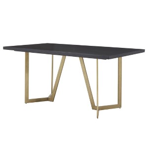 Karianne Dining Table Black/Gold - Inspire Q: Textured Diamond Inlay, Metal Trestle Base, Seats 6 - 1 of 4