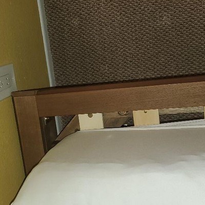I took a chance ordering this bed frame even though it didn’t have many reviews, and the reviews it did have weren’t that great. BUT, I am SO glad I went for it! This bed is super function, sleek, retro, and sturdy. The wood is a beautiful walnut grain and not as painty brown as it initially looks in pictures. This frame give you’d that floating mattress style/trend, but is elevated by the wooden lip all around the edges. There is space between the lip and the mattress as others have mention, but I found that this is absolutely essential if you intend to use a thick comforter on it and tuck in the edges. If there were no allotted space, the comforter simply would not tuck in like the picture advertises. All in all I’m so pleased with this frame and think it’s a steal for the price!