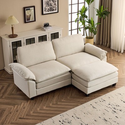 Karl Home |120 in. W Pillow Top Arm Double-layer Cushion Corduroy Sofa in White With Ottoman