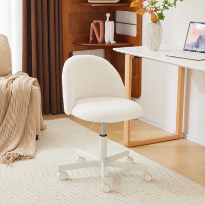 Karl Home |28 inch W White Mid-Back Swivel Cotton And Linen Office Chair Task Chair With Adjustable Arms