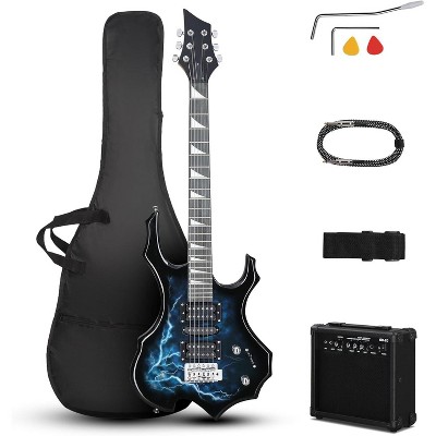 - The 20 watt amplifier with built-in speaker, headphone output & input jack. It can be used with a 6-string electric guitar to better play a variety of sounds. This electric guitar kit is a great choice for beginners to experienced musicians of all levels.