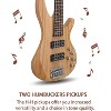 - his bass guitar has chrome rotary controls for the volume and tone. The 3 way pickup selector changes the bass guitar tone between front, rear and both humbucker pickups, supporting you to create music or play more easily.