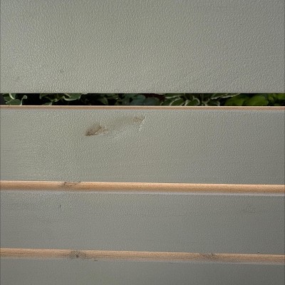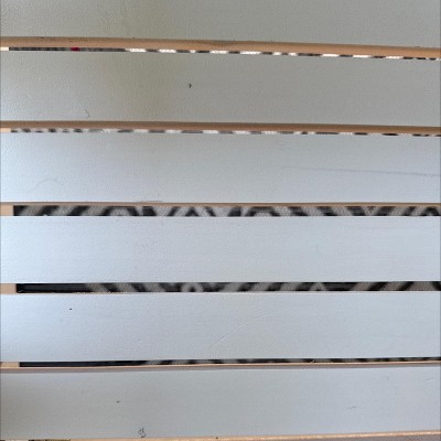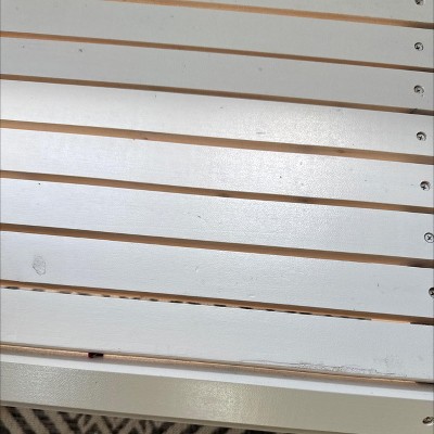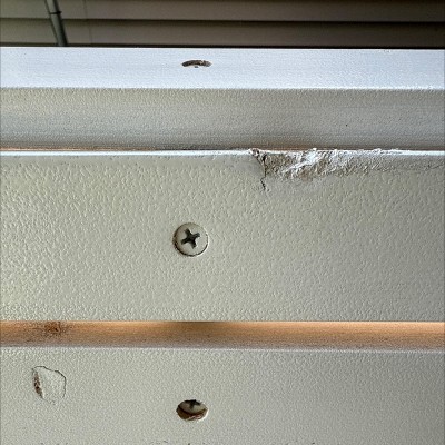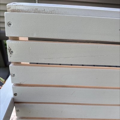 Several knicks in the wood that have been painted over. Seat is very short and extremely uncomfortable. Now that it is hanging no one wants to sit in it. VERY disappointed!
