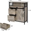 - Considerate design: A small groove is specially designed on the drawer, which is convenient for you to take the toiletries, and is stylish and beautiful. With a handle on the door, you can easily open the sliding barn door, which matches the color and overall style of the cabinet.
