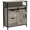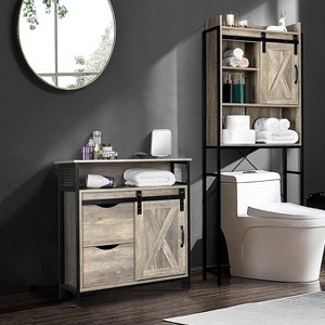 Barn door-inspired design: Inspired by barn doors and steeped in rustic style, this bathroom floor storage cabinet brings an elegant countryside feel to your bathroom. This design will add endless charm to your bathroom space. Versatility storage: A spacious tabletop, an open shelf, 2 large drawers, and a small adjustable height 2-layer cabinet can organize your common household items well and keep your odds and ends in order. This floor cabinet provides a perfect choice for your bathroom, dining room, hallway, and other family spaces.