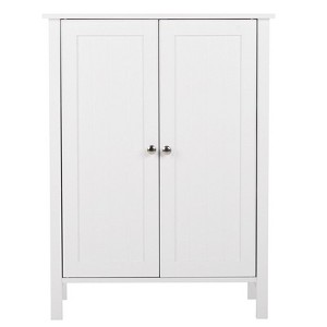 This is a simple and modern style standing bathroom cabinet. Adopting high-quality and hard MDF sheets, it is waterproof and moisture-proof. Double doors and a three-layer design can help you classify your items better. You can put in a variety of toiletries, cosmetics, and other sundries. This bathroom cabinet is not only used as a bathroom cabinet but also can be used as a side cabinet and cupboard. In addition to the bathroom, you can also put it in the bedroom, living room, and kitchen to meet your diverse home design needs. This cabinet is sturdy, durable, waterproof, practical, easy-to-clean, versatile, and long-lasting, ideal for home use.