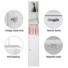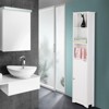 This is a simple and modern style wall-mounted standing cabinet. Adopting high-quality and hard MDF sheets, it is waterproof and moisture-proof. One-door and five-layer design maximizes the storage space and can help you classify your items better. You can put a variety of toiletries, cosmetics, and other sundries. In addition, it features an anti-dumping device to further ensure the safety of use. This bathroom cabinet is not only used as a bathroom cabinet but also can be used as a side cabinet and bedside table. In addition to the bathroom, you can also put it in the bedroom and living room to meet your diverse home design needs. This cabinet is sturdy, durable, waterproof, practical, space-saving, easy-to-clean, versatile, and long-lasting, ideal for home use.