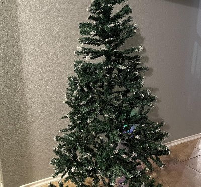 Extremely disappointed with this tree. The tree is not exactly 6 feet, horribly empty when put together. This tree doesn't look like the photo. No matter how much you fluff you can see holes and wide open spots between each layer of branches. So many decorations had to be added to distract the eyes from the lack of fullness of this tree. The price is not acceptable for what was received.