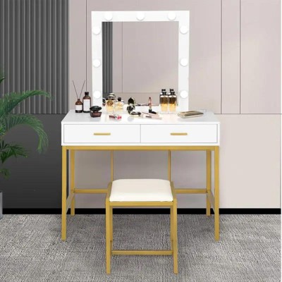 Karl Home Large Makeup Vanity Set with LED Mirror Cabinet, USB & Power Outlet,3 Drawers and 5 Doors