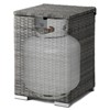 - Crafted from fade-resistant gray rattan, this unit discreetly conceals propane tanks or small gas cylinders while enhancing your patio, deck, or garden decor.