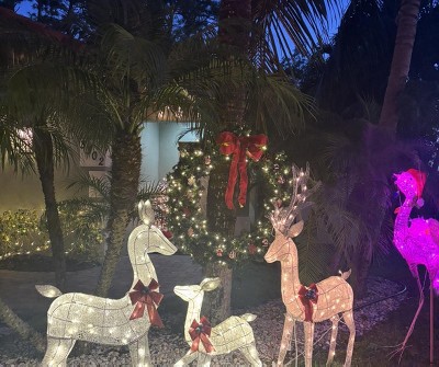 It’s a good size and the ornaments that come with it are cute. Super easy to put together and has a good amount of lights. I put it in front with the lighted deer and it looks great.