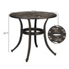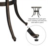 The gorgeous floral design of this outdoor table is sure to stand out and add an elegant look to your patio, ideal for sitting around with your family and friends to enjoy leisure time. It is made of solid cast aluminum with rust and weather-resistant powder-coated finish that is durable and lightweight, this selection is tough enough to last, providing the perfect place to make memories for years to come. Adjustable foot pads give more stability and keep the table in place.