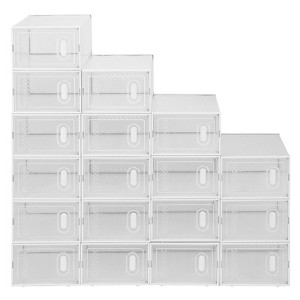 Karl Home | Shoe Storage Boxes 18 Pack Clear Plastic Stackable - White