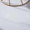 - A durable, laminate faux marble table top sits atop the frame designed with a smooth gold finish to add life to any setting