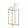 - Made of MDF laminated particleboard with powder-coated metal legs, The faux White marble Finish pairs with an easy to clean and X-shaped metal base welded firmly which increases the contact area on the ground, this end table is of great stability.