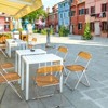 A set of 2, modern-style acrylic chairs with a stainless steel frame ensures durability and a 350-pound load capacity. Their transparent orange design adds elegant charm, while the foldable feature allows for easy storage and portability.