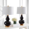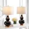 Illuminate your space with the exquisite Karlen table lamp set, a perfect blend of modern design and classic elegance. Standing at 28.5 inches, these black and gold lamps combine sleek glass with sturdy iron to create a striking visual impact. Ideal for any setting, the Karlen set adds sophistication to living rooms, bedrooms, or offices.