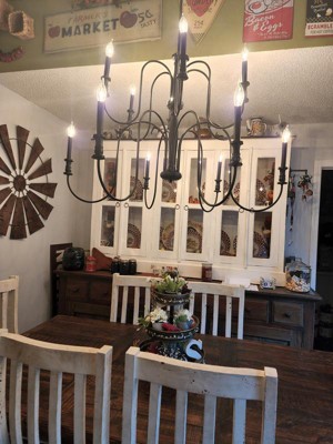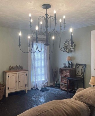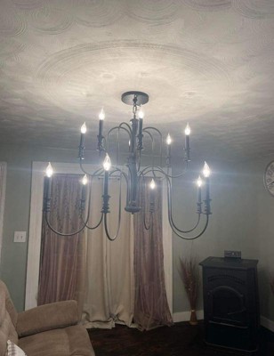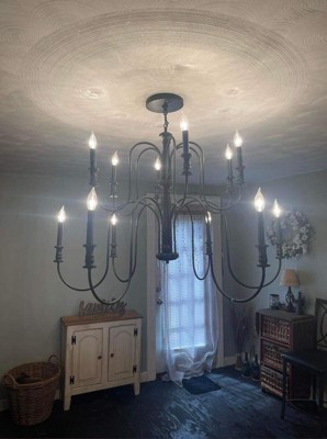 [This review was collected as part of a promotion.] The Karthe 42 Inch 12 Light Chandelier in the color of Black is absolutely stunning. This chandelier in my opinion can be put in any home from Farmhouse, Traditional to Modern Style. The fixture is so simple yet so beautiful. It's two tiers draw your eyes up straight to it. The candelabra bulbs are a great addition to this piece as well. It's bright and will light up the entire room.