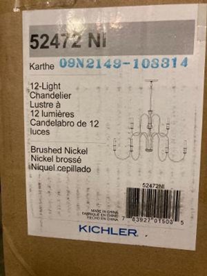 [This review was collected as part of a promotion.] Received a New Karthe 12 Light 42 Inch Chandelier Beach and Brushed Nickel from Kichler Sampling Program. Easy to install well made had to install in garage. hung to low inside home. Had extra rods to make it hang even lower. Well made and very durable.