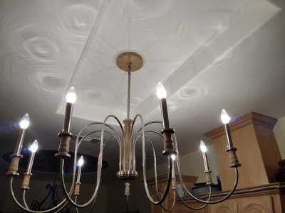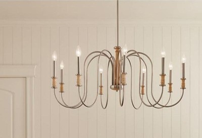 [This review was collected as part of a promotion.] My new Kichler chandelier was easy to install and looks beautiful in my farmhouse décor. The 9 lights give off a warm, constant glow and is great to set a relaxing mood. The chandelier is quality made and is beautiful, yet durable. I would definitely recommend this chandelier to my friends and family!