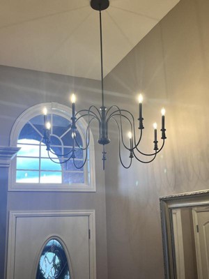 [This review was collected as part of a promotion.] I originally picked this karthe 9 light chandelier for above me kitchen table but it just looks out of place here. The chandelier is very beautiful and simple but be sure to measure the area you are planning for. It's thin long black arms are a modern goth home dream and will be finding a new place ASAP for it in my home.
